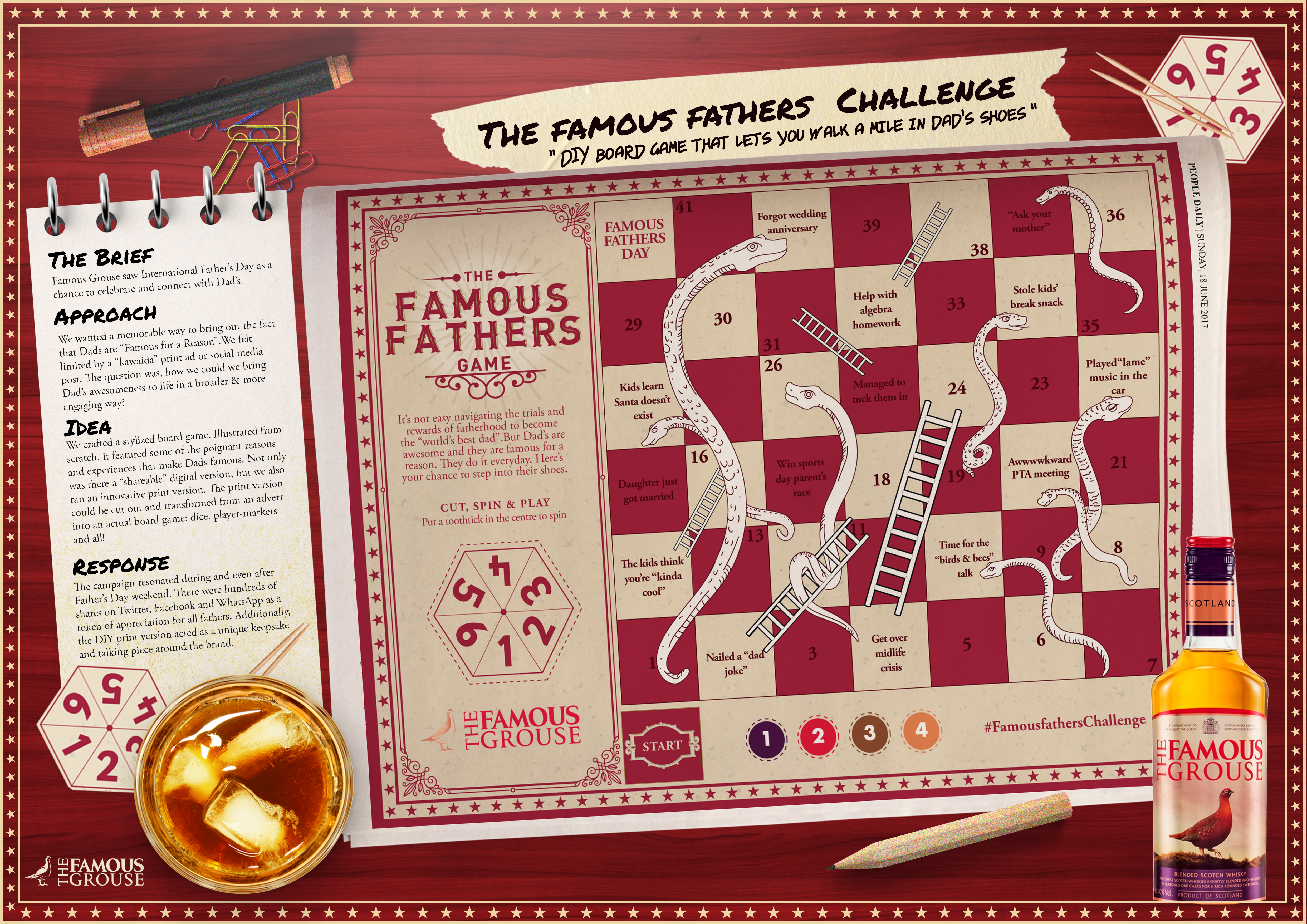 An award-winning newspaper cut-out “board-game”. Released in the People Daily newspaper on Father’s Day to celebrate the nuances that make Dad’s great.