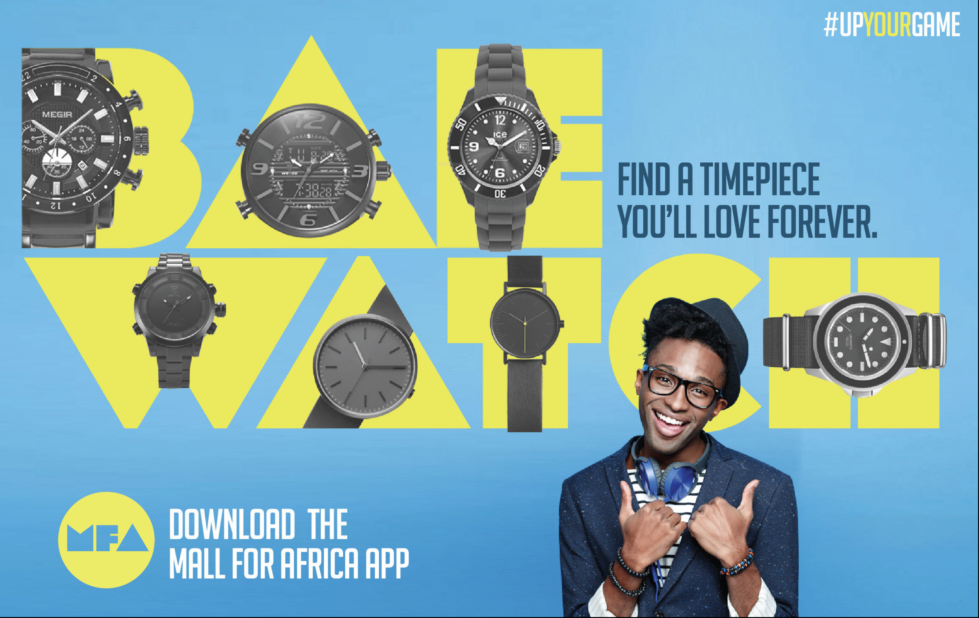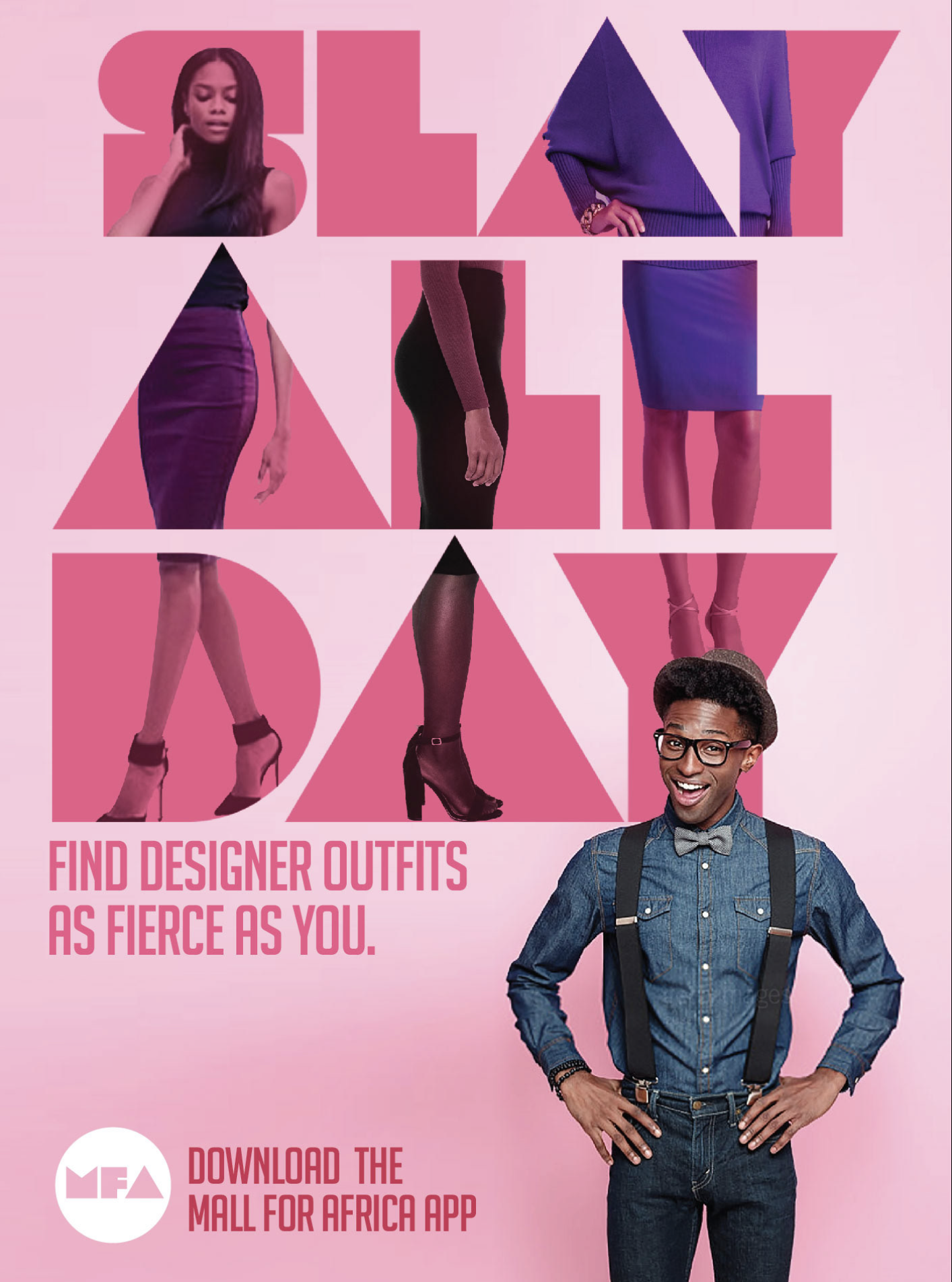 Stylish ads inviting people to “Up their game” with global fashion shopping from Mall For Africa